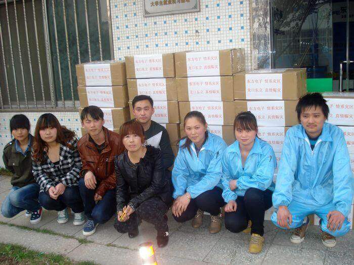 4月20日早8点,四川雅安发生7级地震,消息传来后,东莞市明致精密制造有限公司第一时间做出反应,公司旗下以生产线缆、灯具和汽车售后服务产品为主营的东立公司立即组织员工加班加点,赶制灾区可能急需的照明设备LED头灯和手电筒,用最快的速度发往灾区,无偿支援灾区救援工作。
