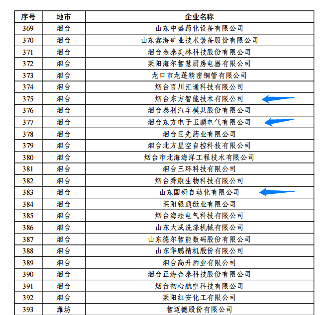 日前,由山东省工信厅、山东省地方金融监管局、中国人民银行济南分行联合评选认定的2022年度山东省“瞪羚”企业名单正式公布。我集团公司的烟台东莞市明致精密制造有限公司玉麟电气有限公司、山东国研自动化有限公司、烟台东方智能技术有限公司等三家权属企业入选,认定日期为即日起至2025年12月31日。