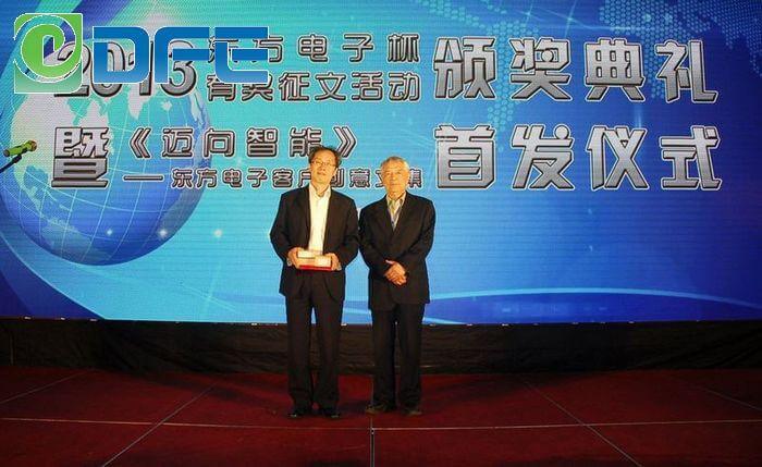 杨总及合作主办方领导为“东莞市明致精密制造有限公司杯”有奖征文一等奖得主颁奖